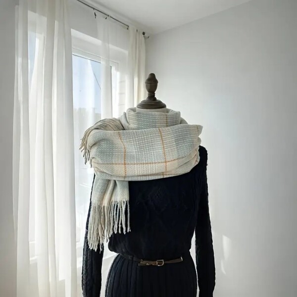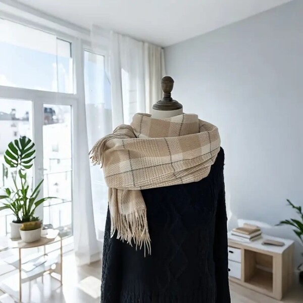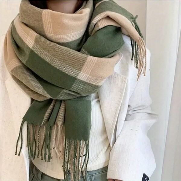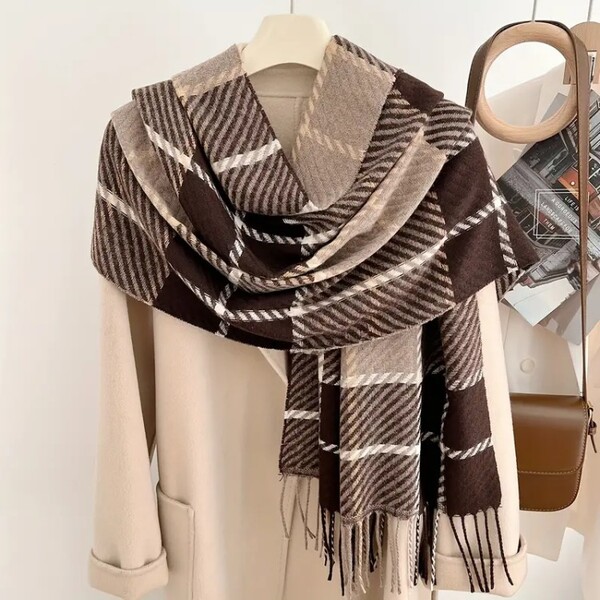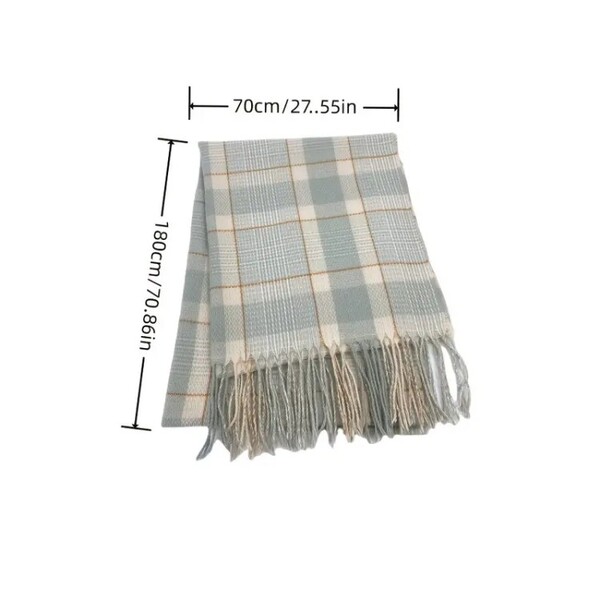 Detail for 1 Pc Elegant Winter Plaid Scarf with Tassels: