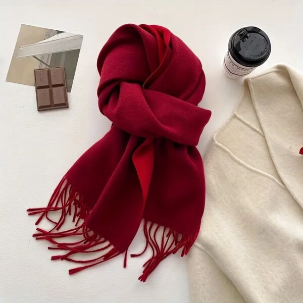 Detail for 2 Pcs Elegant Striped Scarf for Women with Tassels: