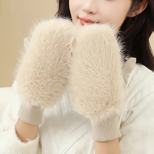 Detail for 10 Pairs Solid Color Fuzzy Gloves Warm Cycling Gloves for Women and Girls: