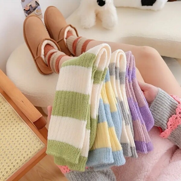 Wholesale of 60 Pairs Colorblock Stripe Ribbed Mid Tube Socks and 30 Pairs Heart Pattern Plush Mid Tube Socks .