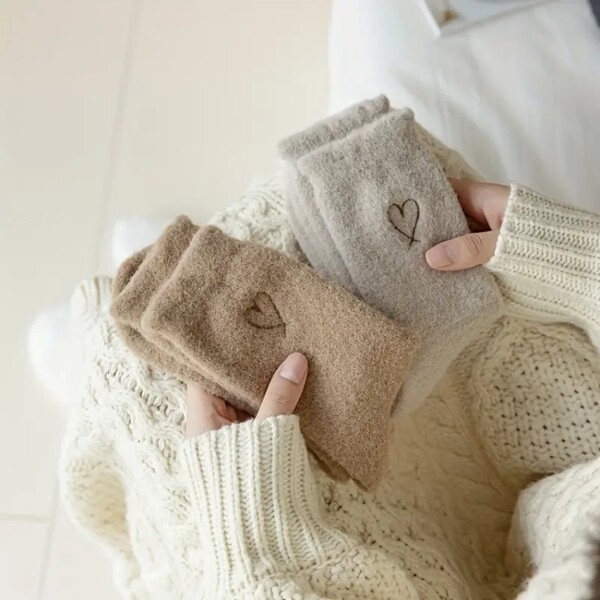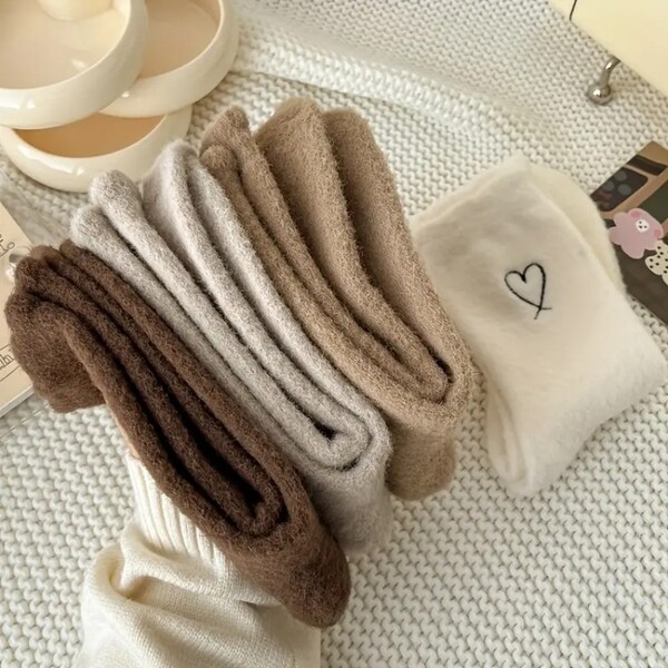 Detail for 30 Pairs Heart Pattern Plush Mid Tube Socks.