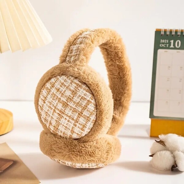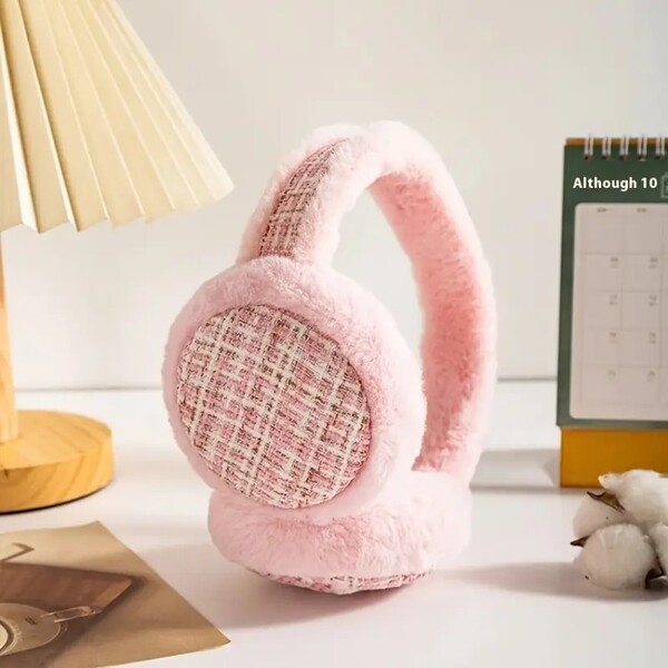 Wholesale of Thick Houndstooth Ear Muffs and Pink Heart Plush Earmuffs.