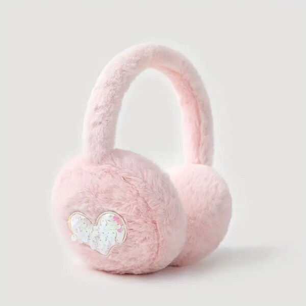 Detail for Pink Heart Plush Earmuffs: