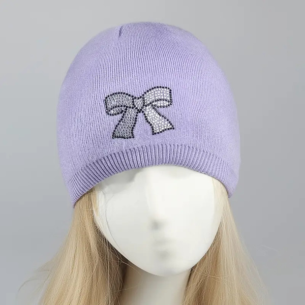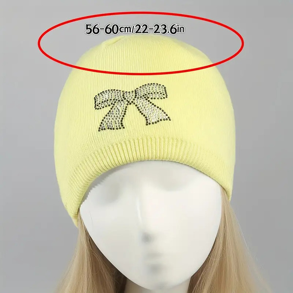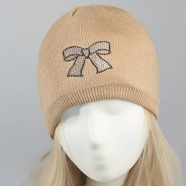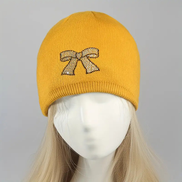 Detail for 16 Pcs Rhinestone Bow Knit Beanie for Women: