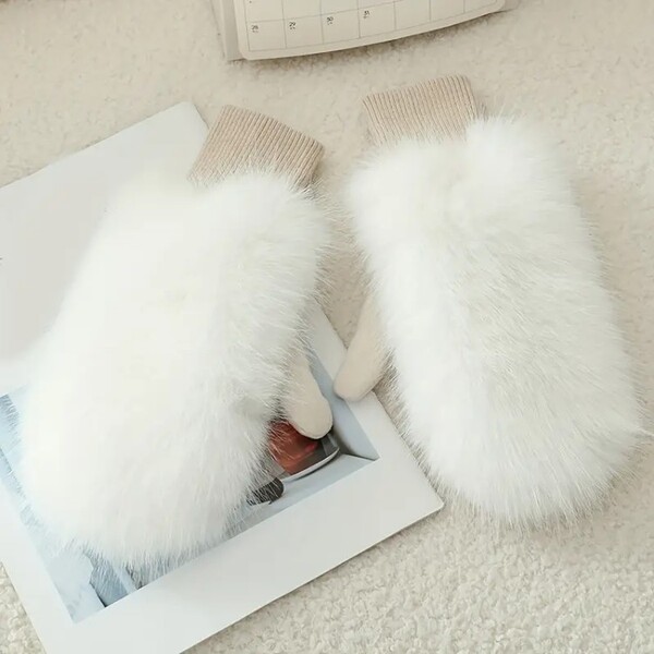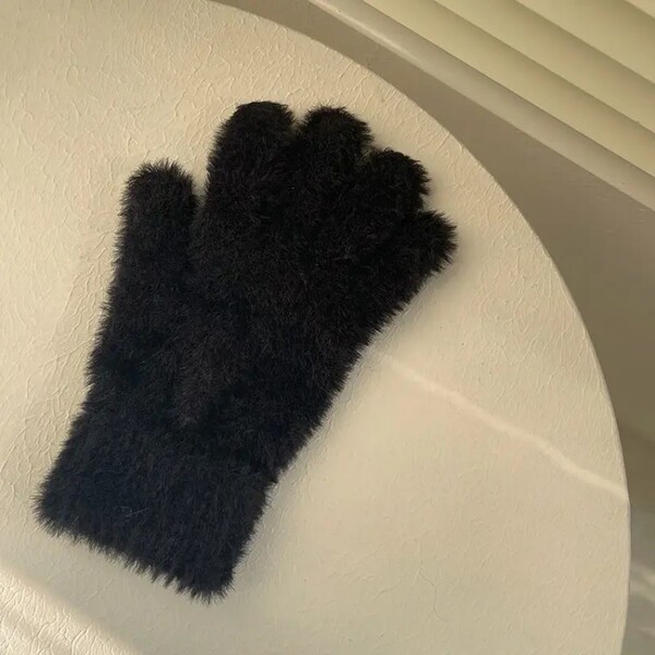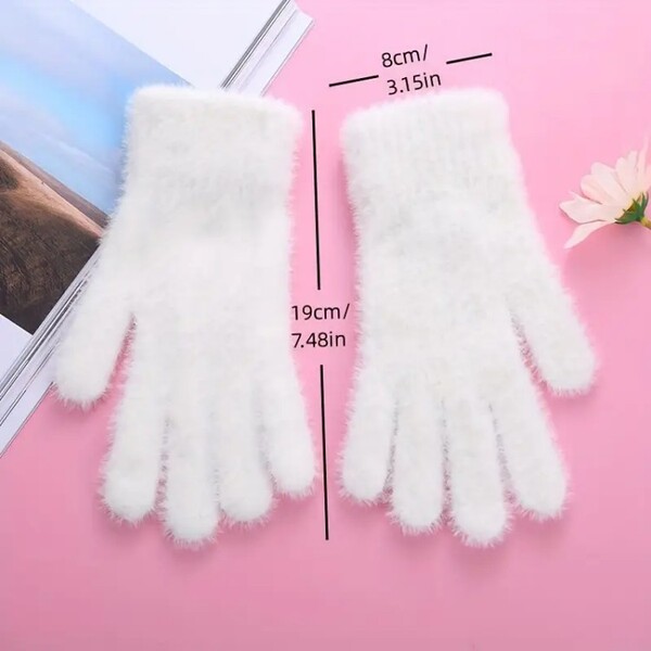 Detail for 10 Pairs Solid Color Fuzzy Gloves Warm Cycling Gloves for Women and Girls: