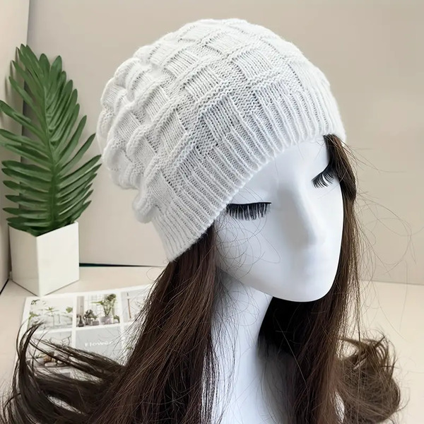 Detail for 12 Pcs Simple and Stylish White Knit Beanie for Women: