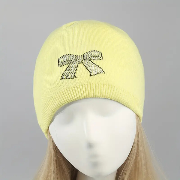 14Pcs Rhinestone Bow Knit Beanie for Women