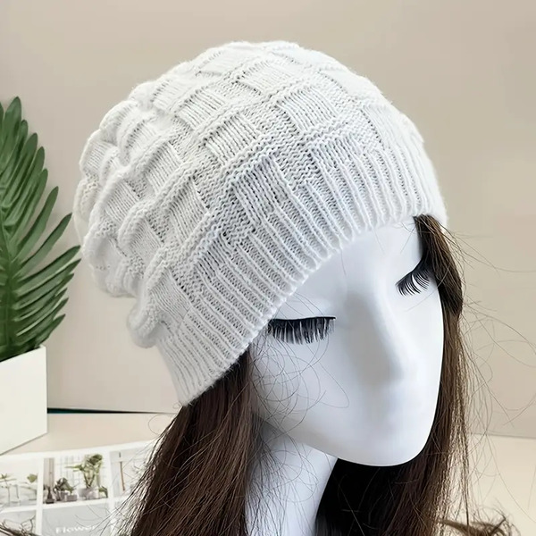 14Pcs Simple and Stylish White Knit Beanie for Women