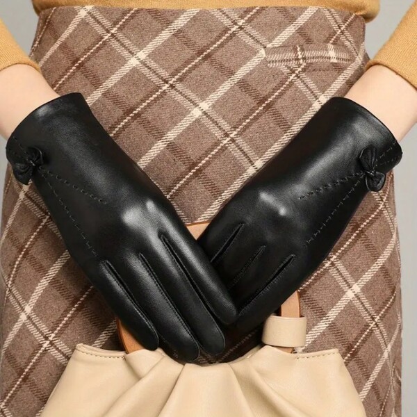 3 Pairs Solid Color Genuine Leather Gloves for Women Hand Washable